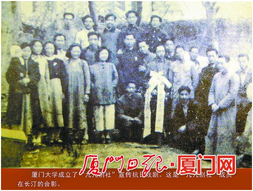 厦大成立“九九剧社”宣传抗日戏剧。图为“九九剧社”成员在长汀的合影。
