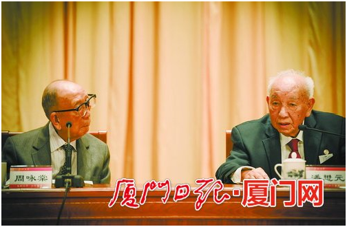 潘懋元和邵建寅在纪念会上向年轻师生介绍往事,他们在介绍自己入读厦大的年份时说,你们可能都还没有出生,很多事情听来可能像天方夜谭。
