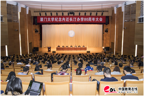 中国教育在线讯 12月24日下午,厦门大学举行内迁长汀办学80周年纪念大会,隆重纪念那段烽火中的不平凡岁月,从中汲取力量继续前行。我国著名高等教育学家潘懋元教授,菲律宾著名华侨实业家邵建寅,台湾著名企业家周詠棠,厦门大学物理系教授、我国发光学研究创始人之一的吴伯僖等长汀时期老校友,与厦大师生近千人共聚一堂,共忆艰苦自强岁月,共叙长汀办学精神。