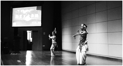 高山流水,知音难觅;阳春白雪,余音绕梁。青丝垂肩,青色长裙,优雅恬静,像是从画中走出来的琴者方文蓉用她娴熟的指法与古典的乐曲《高山流水》惊艳了全场。当极具异域风情的音乐响起,两位斯里兰卡的留学生安喜乐、梅花化作中斯友好交流的使者,以独特的服饰与舞蹈向观众勾勒出在那个不远的国度里,何为劳动之美,何为文化热爱与自信,令人心神向往。接着,李泓君同学带来独唱《我怀念的》“我怀念的是无话不说,我怀念的是一起做梦。”那份怀念的深情,那温柔而不失力量的声线,那精湛的唱功,这一切都在歌者与观众之间搭建起深切的共鸣,俘获了观众的心。下半场接近尾声,刘嘉婧、王熠携钢琴与架子鼓合奏《克罗地亚狂想曲》,克罗地亚战火后的残垣断壁,倒映在血泪和尘埃中的夕阳,都通过两位表演者倾注感情、激昂高亢的演奏淋漓尽致地得以展现,激起人足以跨越时空的狂想。