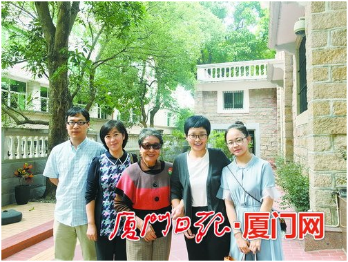 蔡王琼璎女士(中)在厦大留影。(厦大校友总会供图)
