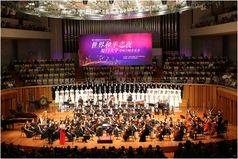 Por invitación de la Asociación para la la Promoción de la Cultura China, el coro y la orquesta sinfónica de la Universidad de Xiamen ofrecieron un concierto en el Centro Nacional de Artes Escénicas en Beijing durante la Semana Internacional de Ciencia y Paz, cuyo tema es la noche de la paz mundial. El coro y la orquesta están formados por estudiantes y profesores de la Universidad, y han participado en muchas ocasiones importantes, como la Cumbre de BRICS en Xiamen.