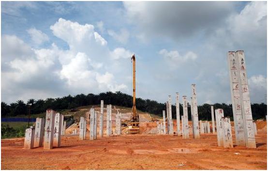 图为:厦门大学马来西亚分校二期工地基础打桩。曾艾林摄