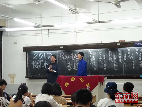 东南网10月17日讯(通讯员 肖鑫璐)为展现高校相声社社团风采,加强高校间文化交流,10月14日,莆田学院喜剧社应邀前往厦门大学南强二教学楼参加相声经验交流会,厦门大学博乐相声社及莆田学院喜剧社负责人出席本次交流会。