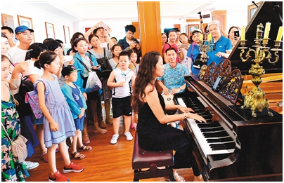 在鼓浪屿钢琴博物馆,来自上海的钢琴艺术家在为游客现场演奏。 新华社记者 魏培全摄