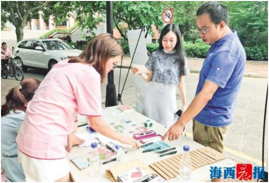 厦大迎新,先送上精美的书签、明信片等,都是浓浓的厦大风。记者 许蔚菡 摄