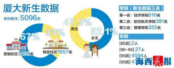 根据厦门大学昨日公布的本科新生数据,今年一共有5096名2017级本科生,集中在“95后”,其次就是“00后”,共有473人。遥想去年,“00后”还是个位数。而8日开始迎新的厦大嘉庚学院,“00后”也达到了190人。不少人认为,这是“00后”将代替“90后”主导大学校园的前奏。
