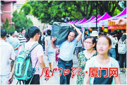 施先生的独生女小施今年刚满16岁,比同龄人早两年迈入大学校门。但一进校园,施先生发现自己的担心有些多余,虽然第一次来厦大,但办理所有手续时,小施都冲在前面抢着自己完成。看女儿跑前跑后,施先生很感慨,“我自己是一名数学老师,小施很小的时候我就开始给她‘上课’,因此,她入学比其他孩子早一两年。”施先生告诉记者,他们来自莆田南日岛,虽然读书早又是独生女,但小施一直很懂事。施先生指了指身边的水桶,“这个桶是她高中用的,她看桶没坏、又能装东西,这次就坚持把水桶也提过来了。”