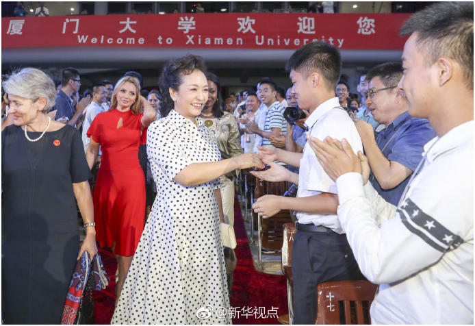 9月5日,国家主席习近平夫人彭丽媛同金砖国家领导人第九次会晤和新兴市场国家与发展中国家对话会外方团长夫人共同出席在厦门大学举行的第二届联合国教科文组织女童和妇女教育奖颁奖仪式。