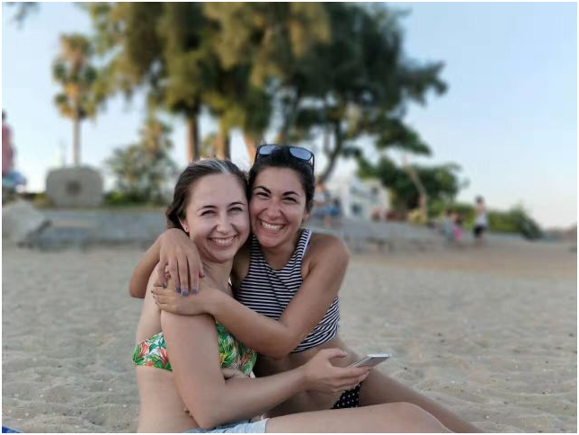 图为俄罗斯籍留学生安娜(右一)跟朋友在厦门沙滩的合影。新华社发(图片由被访者提供)