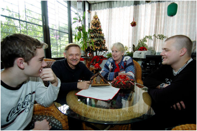 来自美国的厦门大学教授潘维廉先生(左二)和家人在一起(2006年12月19日摄)(新华社记者姜克红 摄)