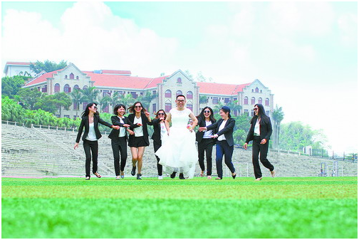 本报讯(记者 廖闽玮)毕业季将近,近日一组独特的“厦大研究生毕业照”在网络走红,照片中,七个女生“簇拥”着一个男生,女生们身穿黑色正装,男生却身穿白纱,像新娘出嫁般,摆出不少或娇羞或搞怪的姿势。
