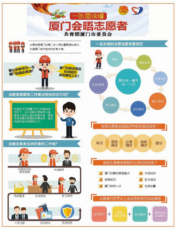 另外,团市委精心制作了《一张图读懂厦门会晤志愿者》的信息图,对志愿者的各方面情况进行详细介绍。