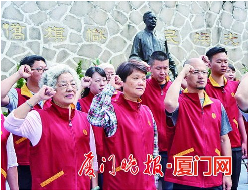 ■50名嘉庚文化志愿者在活动现场宣誓。