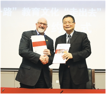 郑通涛表示,目前,该院搭建了“一带一路”国际教育合作平台,与印尼、菲律宾、新加坡、泰国、马来西亚、蒙古、迪拜、俄罗斯、塔吉克斯坦、吉尔吉斯坦、土耳其等沿线国家签署教育合作协议,将重点实施“一带一路”的双向留学、师资培训、人才联合培养推进计划。此外,该院还开展“一带一路”语言、文化、教育、人才培养等相关研究,已推出《“一带一路”视角下的语言战略研究》《“一带一路”视角下的教育发展研究》《“一带一路”国家的人才需求与人才培养》等系列专著和研究报告。