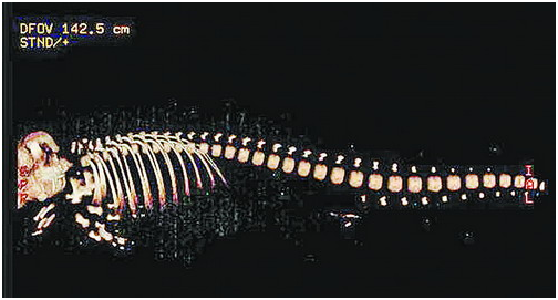 这次获取鲸鱼胎儿CT骨骼图像,属于世界首次。