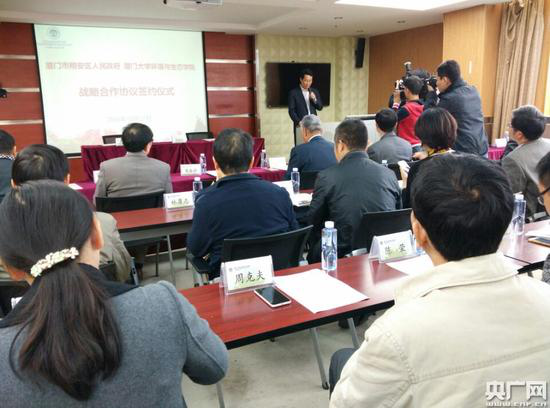 央广网12月28日消息(记者 吕叶松 通讯员 林瑞声)昨天上午,厦门市翔安区人民政府与厦门大学环境与生态学院签署战略合作协议——推进翔安的生态文明建设。这份战略合作协议的签署,既是厦门大学高瞻远瞩,推动校政合作共赢的实际行动,同时也是翔安区深入贯彻“五大发展”理念,加强生态文明建设的重大举措。