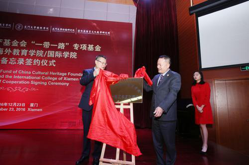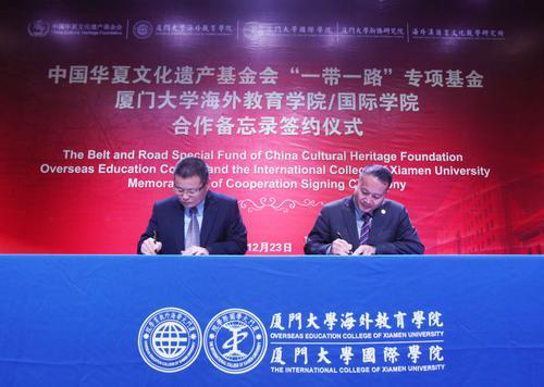 中国华夏文化遗产基金会“一带一路”专项基金与厦大海外教育学院/国际学院共同签署合作备忘录。