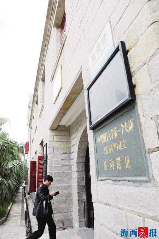 晨报记者与厦门大学党史专家陈炳三老师便约在囊萤楼进行采访。囊萤楼在新中国成立后不久被改造成教学及办公楼,“朝南靠西的第一个房间”,陈炳三老师对厦门大学党支部的诞生旧址烂熟于心。幸运的是,采访的那个时段,旧址的那间教室刚好没课,记者也得以在那个地方,听党史专家重温革命之火燎原的那个年代,八闽第一面党旗飘扬的故事。