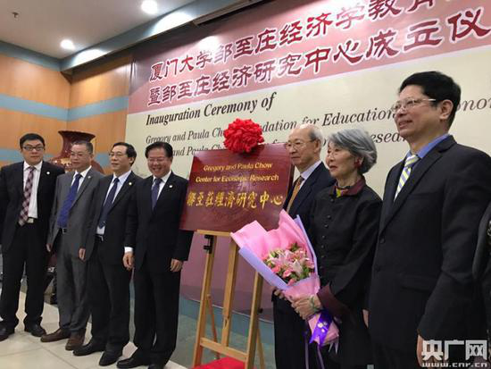 央广网厦门12月5日消息(记者 陈庚 通讯员 邓晶晶)“这是厦门大学的一件大喜事,也是中国经济学界乃至教育界的一件大喜事。”4日下午,厦门大学举行邹至庄经济学教育基金暨邹至庄经济研究中心成立仪式,面对87岁高龄的世界著名经济学家、美国普林斯顿大学教授邹至庄,厦大校长朱崇实代表全校师生员工表示由衷感谢,言辞恳切。