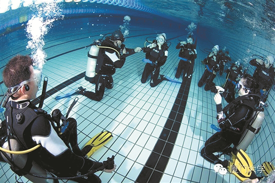 继高尔夫、棒垒球、爬树、帆船后,厦大开设的又一特色体育课前天揭开神秘面纱。25日晚上,厦门大学官微推送的一则关于《厦大特色体育课——揭秘“深藏不露”的潜水课》的文章,让厦大潜水课再次吸足大众眼球。