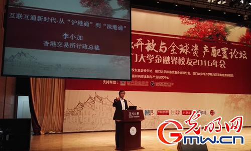 光明网讯(记者 苏伟珍 通讯员 李静) 11月12日,“中国金融开放与全球资产配置论坛暨厦门大学金融界校友2016年会”在厦门大学举行,来自中国大陆、香港、澳门以及台湾等地的“中国金融界的厦大系”代表及厦大师生800余人共聚一堂,共同为中国金融业的繁荣发展献计献策。