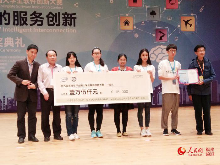 人民网厦门11月13日电(徐林)第九届“英特尔杯”全国大学生软件创新大赛于13日在厦门大学圆满落幕,本次大赛共有20支队伍进入决赛。经过半年多的角逐,来自哈尔滨工业大学的团队凭借其为盲人朋友提供智能服务的项目摘得本届大赛特等奖,厦门大学团队取得一等奖和最具潜力奖。