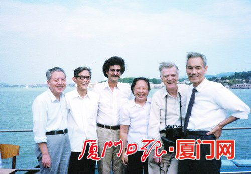 1984年,于厦门接待斯坦福大学E.I. Solomon教授(左三),右一为蔡启瑞。