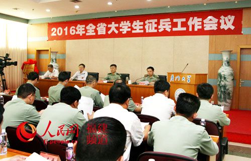 人民网厦门5月6日电(徐林)2016年福建省大学生征兵工作会议于6日在厦门大学召开。会议总结回顾了2015年福建省大学生征兵工作情况,围绕大学征兵工作的任务特点,分析了当前面临的形势,部署了今年大学生征兵工作任务。