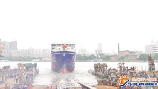 厦门网-海西晨报讯(记者 许蔚菡 通讯员 李静 卢婧)昨日12:55,在广州广船国际有限公司,厦门大学3000吨级大型海洋科考船缓缓驶出船坞,顺利下水。这艘“海上厦大”被命名为“嘉庚号”,将承载着数代厦大人的梦想,把嘉庚精神传播至世界各地。