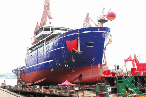 以著名爱国华侨领袖陈嘉庚先生名字命名的厦门大学3000吨级科考船“嘉庚”号,5月8日在广船国际有限公司顺利下水(见图)。这是我国第一艘由船东拥有完全知识产权的海洋科学综合考察船,交付后将成为我国深远海科学考察的主力船之一。