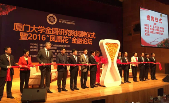 厦门网讯(记者 马庆伟)4月9日下午,由厦门大学、厦门金圆投资集团有限公司主办,厦门大学金圆研究院承办的厦门大学金圆研究院揭牌仪式暨2016“凤凰花”金融论坛在厦门大学科学艺术中心3楼报告厅举办,厦门大学校长朱崇实、台湾青年发展基金会董事长连胜文等两岸金融业界专家学者及知名人士出席了揭牌仪式。