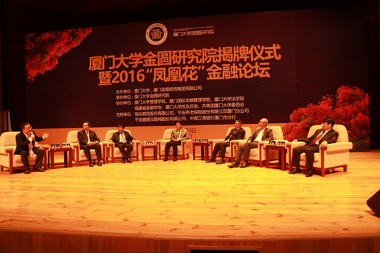 论坛上,中国人民银行福州中心支行行长吴国培、厦门市金融工作办副主任丘筱文、海通国际副主席兼行政总裁林涌、 长城基金管理有限公司董事长杨光裕等多位金融业精英就新常态下银行经营模式创新、资本市场的监管与创新等专题进行2场高端对话,分别由厦门大学管理学院教授戴弈一和厦门大学金圆研究院院长屈文洲主持。在论坛交流中,与会嘉宾达成了共识:中国实体经济发展中的一个长期问题是融资难和融资成本高,这其中一个很重要的原因是融资渠道狭窄,更多依靠银行贷款。为了加大金融体制改革力度,积极发展直接融资,拓宽投融资的多方渠道,以推进供给侧改革,同时促进经济平稳运行。