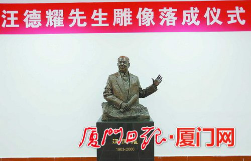 厦大为其老校长汪德耀竖立的雕像,昨日落成,它位于汪德耀曾经工作过的生物馆。