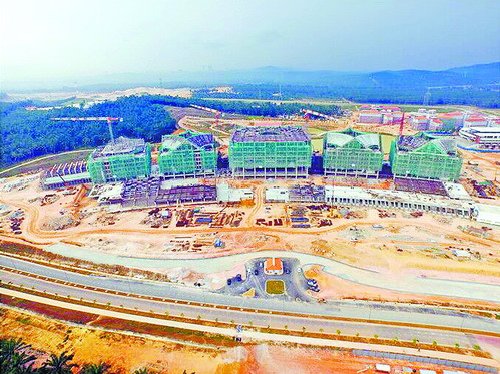 经过一年多的建设,900多亩的厦大马来西亚分校在拓荒者的汗水中初步成形,芙蓉湖的水也开始流通。今年2月22日,它正式开学,首批203名学生都来自马来西亚,他们通过当地独立中学统一的“高考”考进厦大,据说厦大录取线“居中”。
