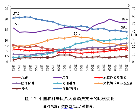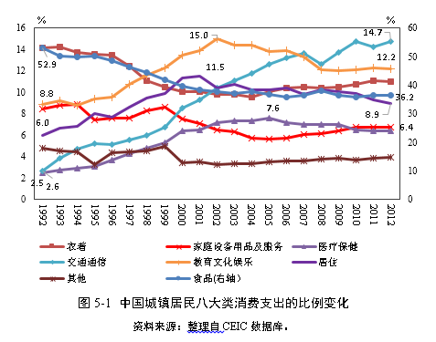 在今后十年之内,随着中国从中等偏上收入经济体向高收入经济体过渡,中国居民的消费结构将出现新一轮的升级转换。以住房交通和食品衣着等实物消费为主,逐渐转变为以服务消费与高质量的实物消费并重。然而,现有的供给并不能满足这些需求。
