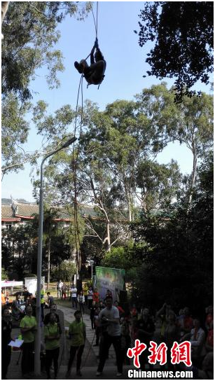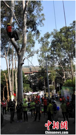 中新网厦门11月15日电 (杨伏山 李静)在中国内地高校中率先将攀树运动引入公共体育课程的厦门大学,15日举办“特步杯”第二届攀树比赛,超过70名学生,参与5个比赛项目的角逐。