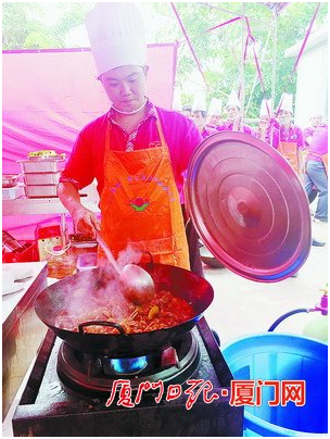 “厦门第一大锅”指的是“厦大餐饮”,它因为在厦门18所学校、7家企业建有餐厅,每天要供应近十万人午餐而得此称呼。每年,“厦大餐饮”都要把这些餐厅的厨师们集中起来,来个PK,看看哪家强。