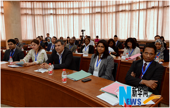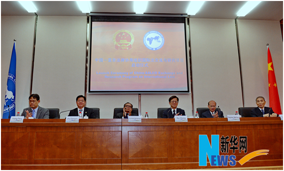 7月13日,中外代表在“中国-亚非法协国际法交流与研究项目”启动仪式上。新华社记者张国俊摄