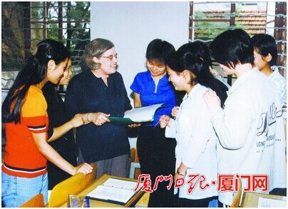 英健1988年到厦大新闻传播系任教,现在看,不能将她等同于普通的外教——某种意义上说,这位在信息传播沟通领域受过严格学术训练的美国教授,是将传播学引入中国的先行者之一。当时的中国,对“新闻传播”还知之甚少,甚至不少人误认为是“船舶”。