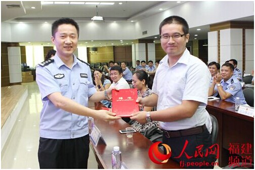 厦门大学法学院与福清市公安局相互颁发聘书,图为福清市公安局聘请法学院教师为警官培训教师。