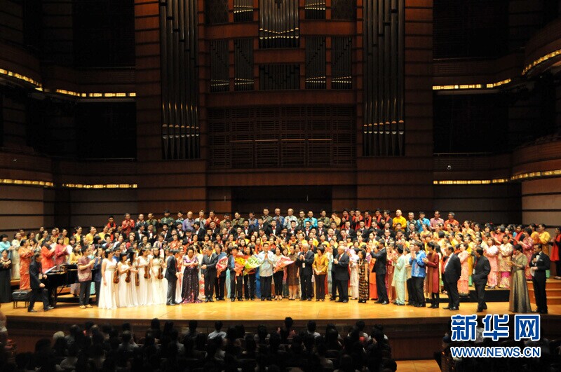 参加音乐会的300多名演员共同演唱中国传统民歌《茉莉花》