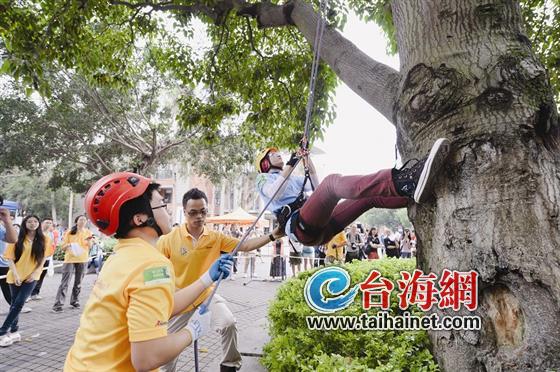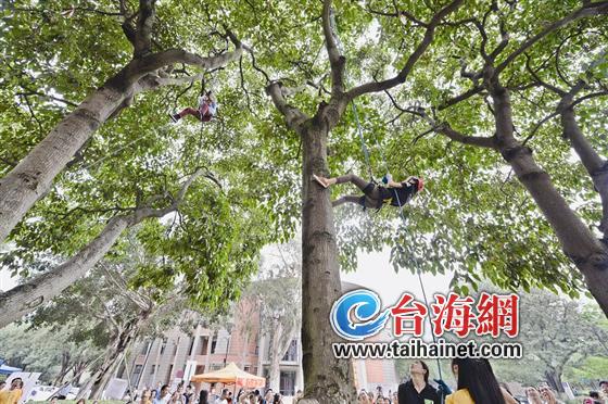 台海网(微博)5月25日讯(海峡导报记者 梁静/文 梁张磊/图)厦门大学神秘的攀树课,终于以竞赛的形式揭去面纱!昨天,近80名精挑细选出的参赛者,在厦大校内参加了一场高级别的攀树比赛,专业的装备、敏捷的身手、快速的移动,看得观众目瞪口呆。