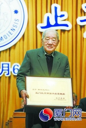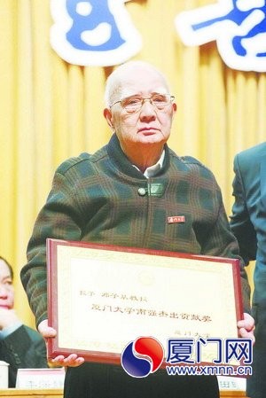 “南强杰出贡献”去年首次颁发,授予厦大最资深教授,去年两位获奖者年龄最大的99岁,平均年龄95岁。当然,年龄并不是这些老教授获奖的理由,他们都有共同的特点: 他们终身与厦大为伴——毕业于厦大,长期为厦大服务,并在各自领域卓有成就。