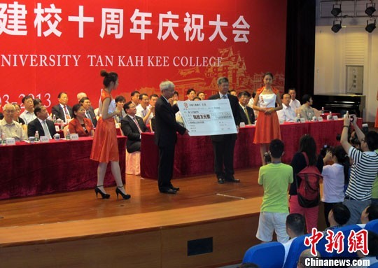 图为香港道德会等机构向嘉庚学院慷慨捐资兴学。杨伏山摄