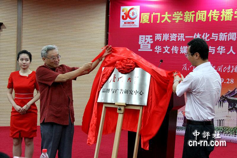 厦门大学新闻学院院长张铭清为品牌与广告研究中心成立揭牌。(中评社 林艳摄)