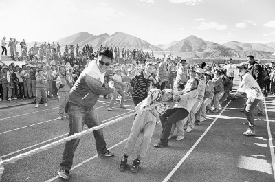 厦大学子精心准备的趣味运动会给高原的藏族孩子们带来无限快乐。