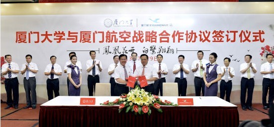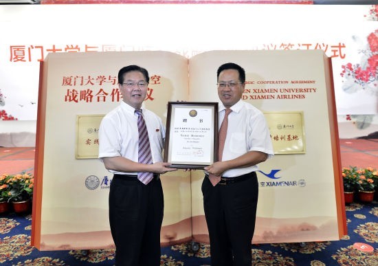 (新浪厦门讯文/陈丽萍)7月29日,厦门大学和厦门航空签署战略合作协议,厦门市长刘可清出席签约仪式。签约仪式现场,厦大聘任部分厦航高管为兼职教授,朱崇实校长现场颁发证书。同时,厦航将在厦大设立“厦门航空”奖教学金。厦航相关负责人称,将来厦大或与厦航建立相关学院,培养专门人才。另外,据厦大朱崇实校长介绍,厦大将与中国航空工业集团合作,共建厦大中航航天航空学院,为厦航与中航培养相应人才,促进厦航与中航双方的优势互补和团结。