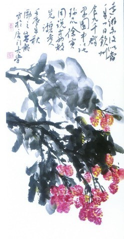 直到系统学习美术,郑盛龙开始用大写意画法画荔枝,在水墨点染、泼墨渲染之下,荔枝树枝繁叶茂,果实粒粒饱满,雨中的荔枝,风中的荔枝,形态各异,“对故乡的情谊,就寄托在荔枝上”,郑盛龙说,他的荔枝图还作为厦大的礼物,赠与来访的塔吉克斯坦总统拉赫蒙;2005年,他的荔枝画作获得中国写意画大展最高奖,堪称他艺术人生的重要里程碑。