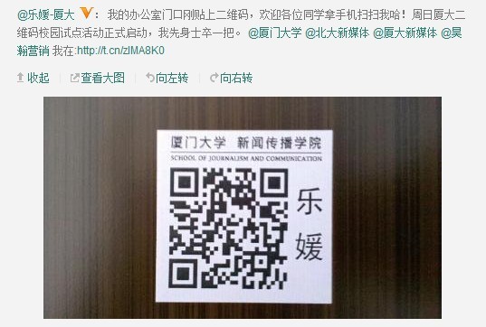 厦门大学党委宣传部副部长徐进功表示厦门大学校园二维码活动不仅方便、快捷地让人们了解厦大,更有利于厦门大学内在美的传播,有利于厦大文化和精神的传承。